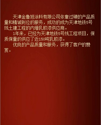 天津金魯旭乳膠漆參與天津市地鐵5號(hào)線工程建設(shè)